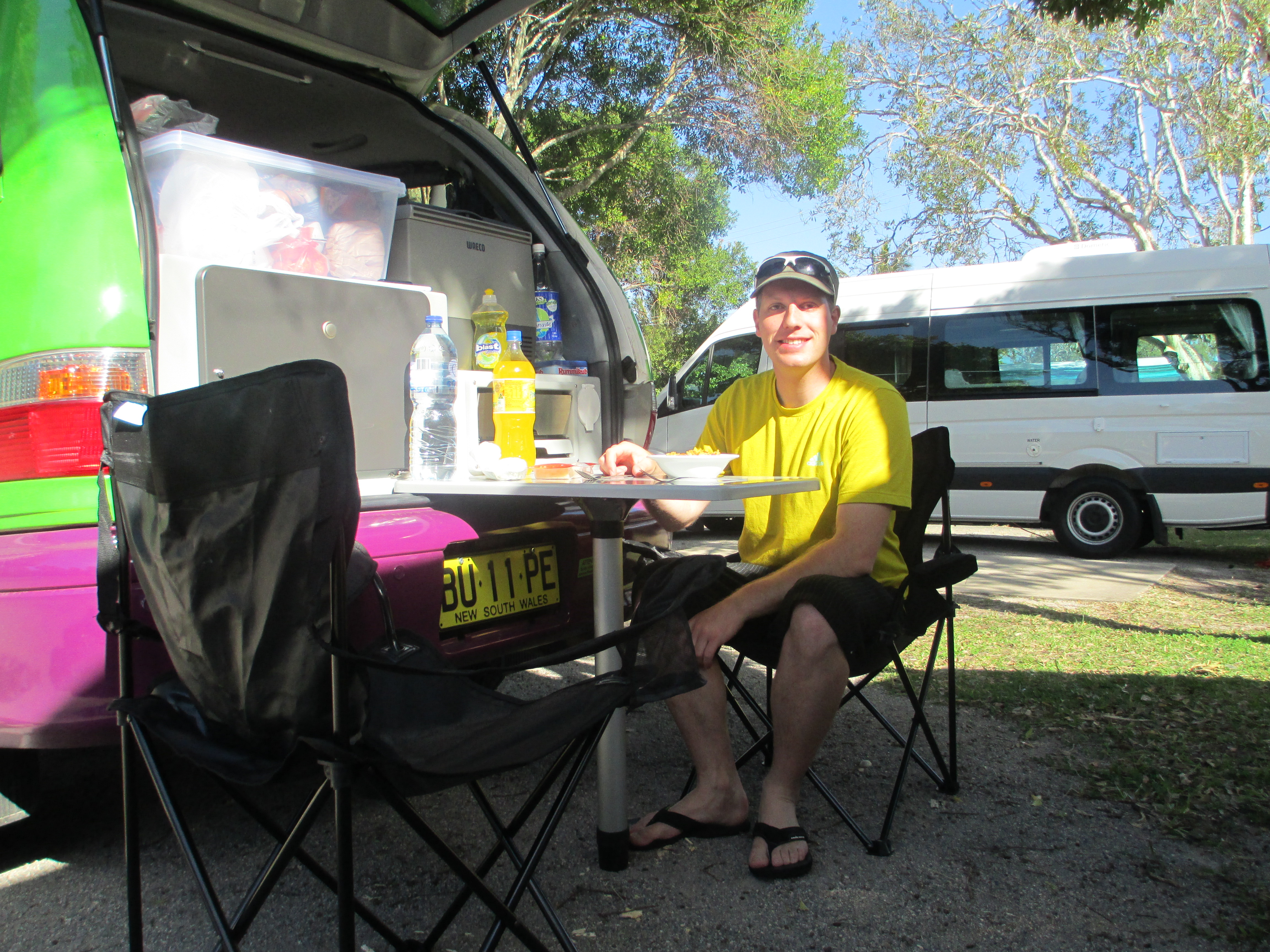 Am nögste morge sind mir denn richtig Beach und üs det en andere Camping direkt am Strand gschnappt. Det hets denn en erste Beach-Tag und bade in dä Welle gäh. Es isch richtig schön waaaarm und sunnig gsi.
