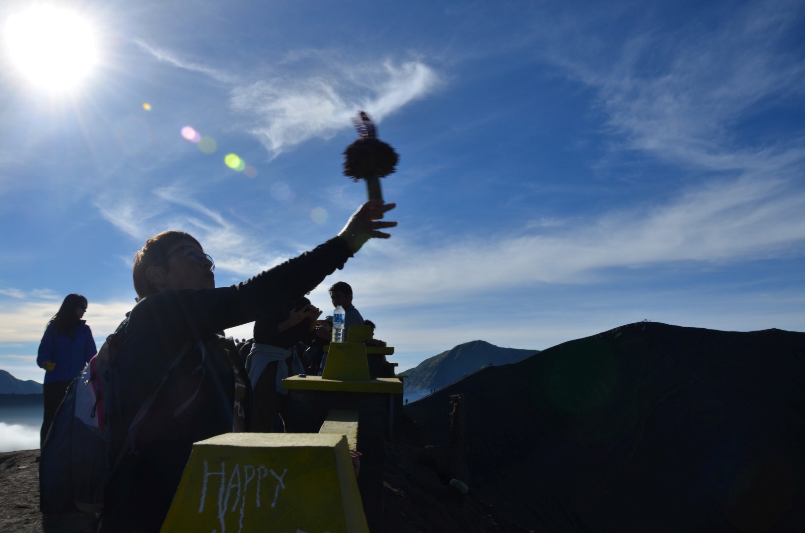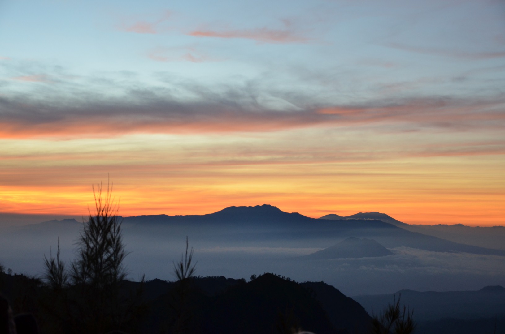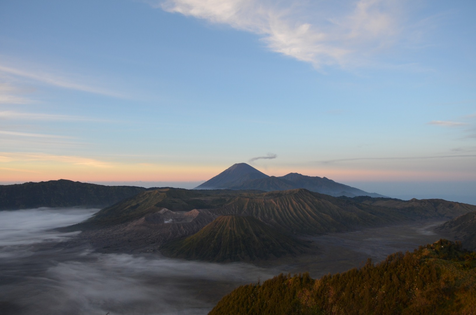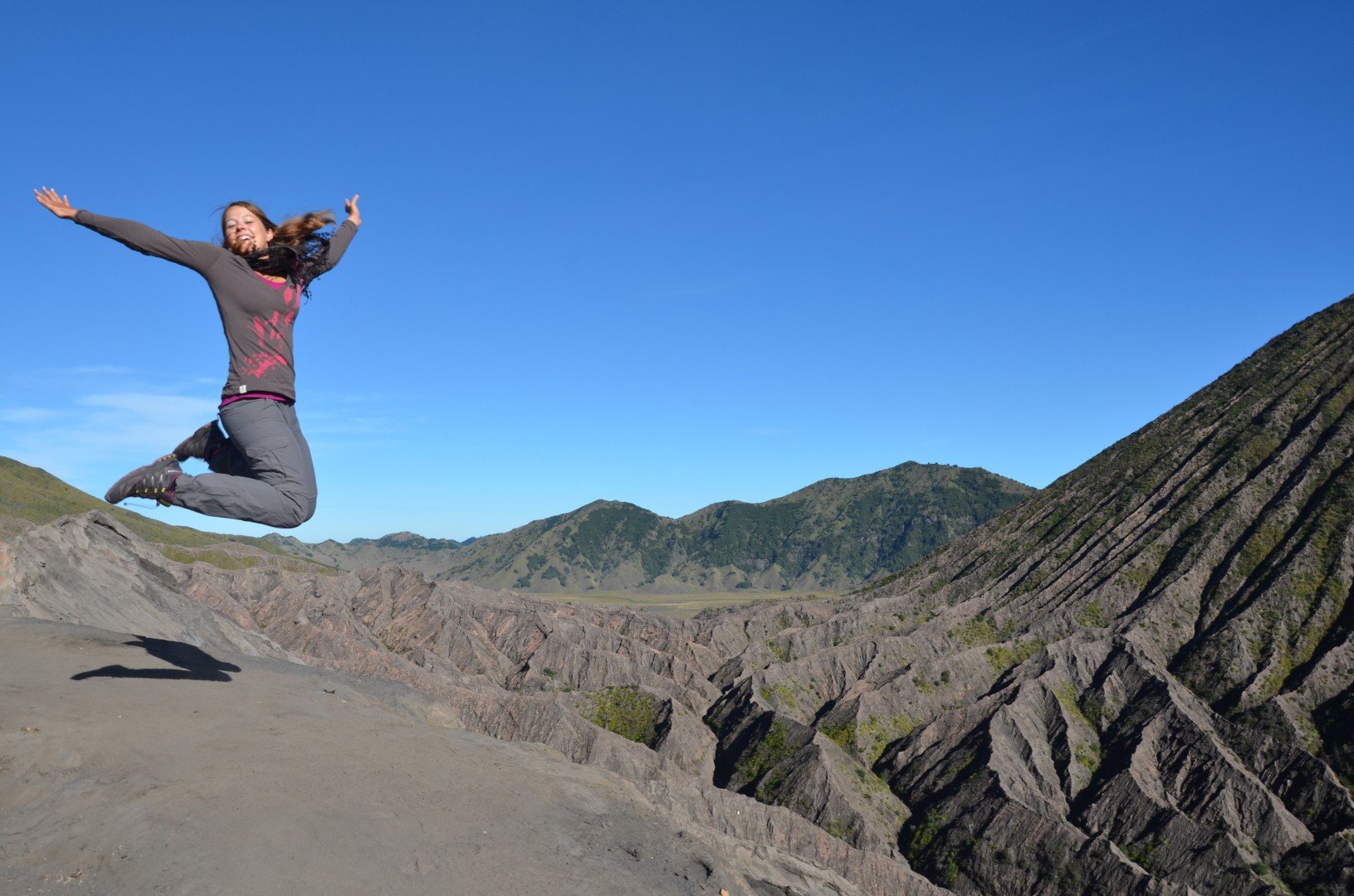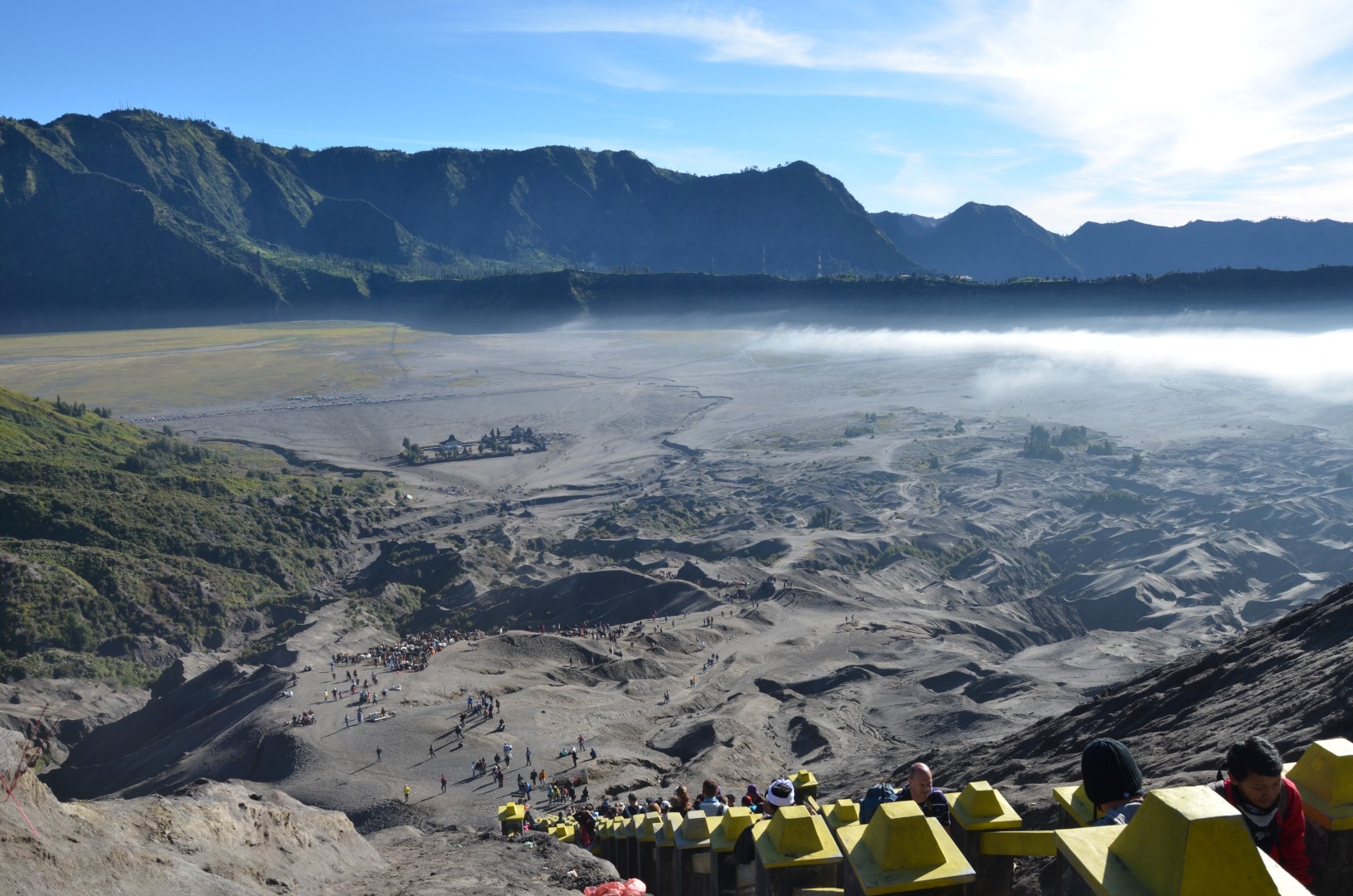 Nach dem lustige Stop isch es wiiter chli in d’Höchi gange. Mer sind underwegs gsi zu üsem Hotel in Bromo wo mer am nögste Tag üsä ersti Vulkan go aluagä sind. Früäh ufstoh hets denn gheisse damit mer uf em Gipfel obä dä Sunnäufgang mit Sicht uf dä Mt. Bromo hend chönä bestunä. Mit em Jeep sind mer am morgä am drü ä Stund steil in Berg ufä gfahre. Mer sind aber definitiv nit diä einzige gsi. Dobä hets wo Autos und Lüt denn nur so gwimmlet. Naja… S’eine oder andere Bildli hets denn glich no geh und wo d’Sunnä denn cho isch hets au bald chli nolo mit dä Lüt und mer hend dä Blick uf ä Bilderbuachmässigi Vulkanlandschaft vor üs gha. Uh schön.