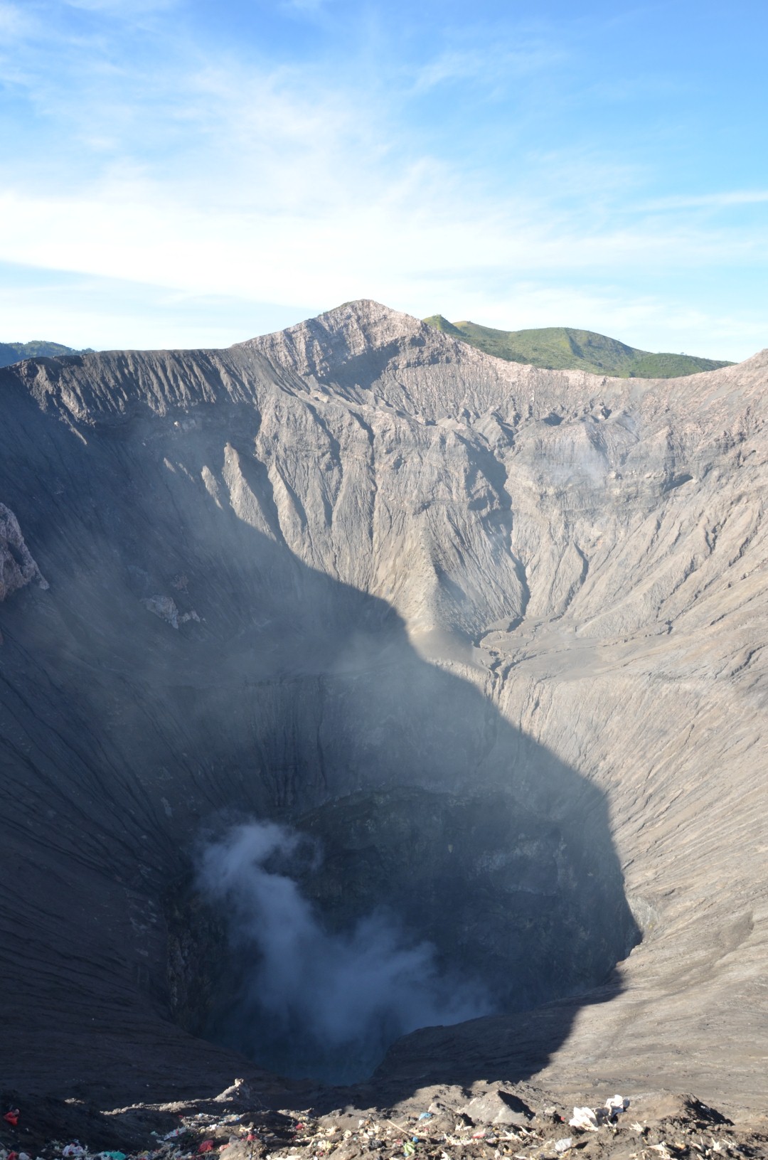 Diä letschtä paar Höhemeter zum Kraterrand hend mer no z’Fuass ufä müässä. I dä Lunge hets schu recht krazet und mer hend scho gmerkt das diä Luft do nöd nur gsund isch. Aber dä Ablick denn in Krater abä wo mer no diä Schwefel-Sauce gseht und alles no chli dampft isch denn scho sehr idrücklich gsi. D’Helen het denn sogar no so es Blumästrüssli in dä Süüri abä gworfä. Das söll angeblich Glück bringe.
